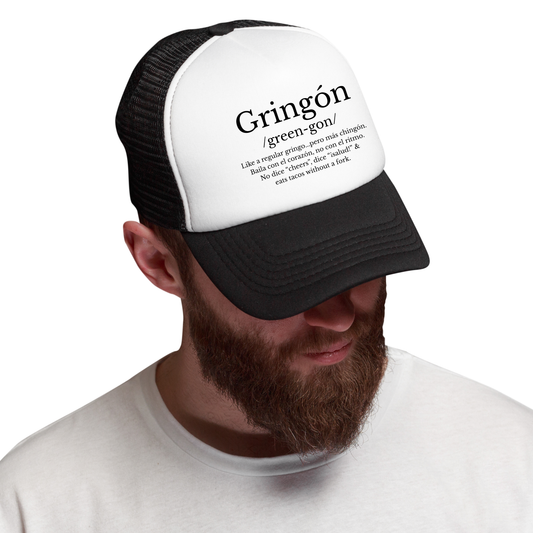 Gringón Trucker Hat – Gorra Negra con Sazón, Humor y Cultura