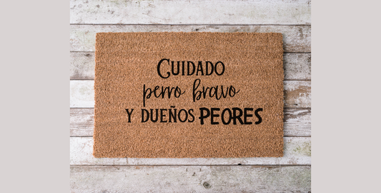 Cuidado: Perro Bravo y Dueños Peores Doormat - Funny Handmade Mexican Welcome Mat, 18x30 Coir