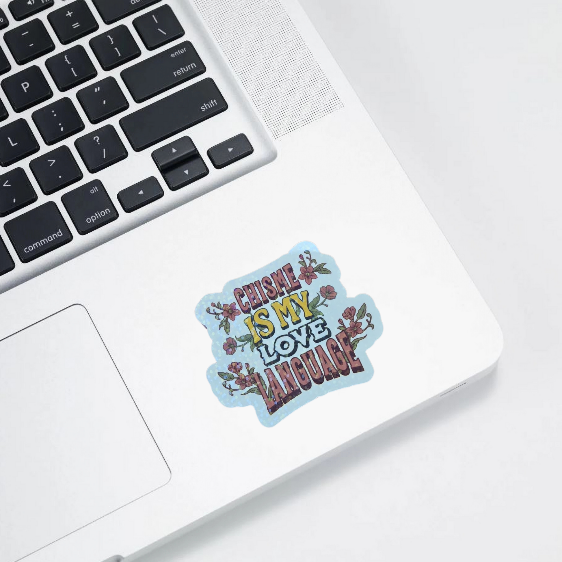 Chisme Is My Love Language – Die Cut Holographic Sticker | Funny & Spanglish AF ☕💬✨