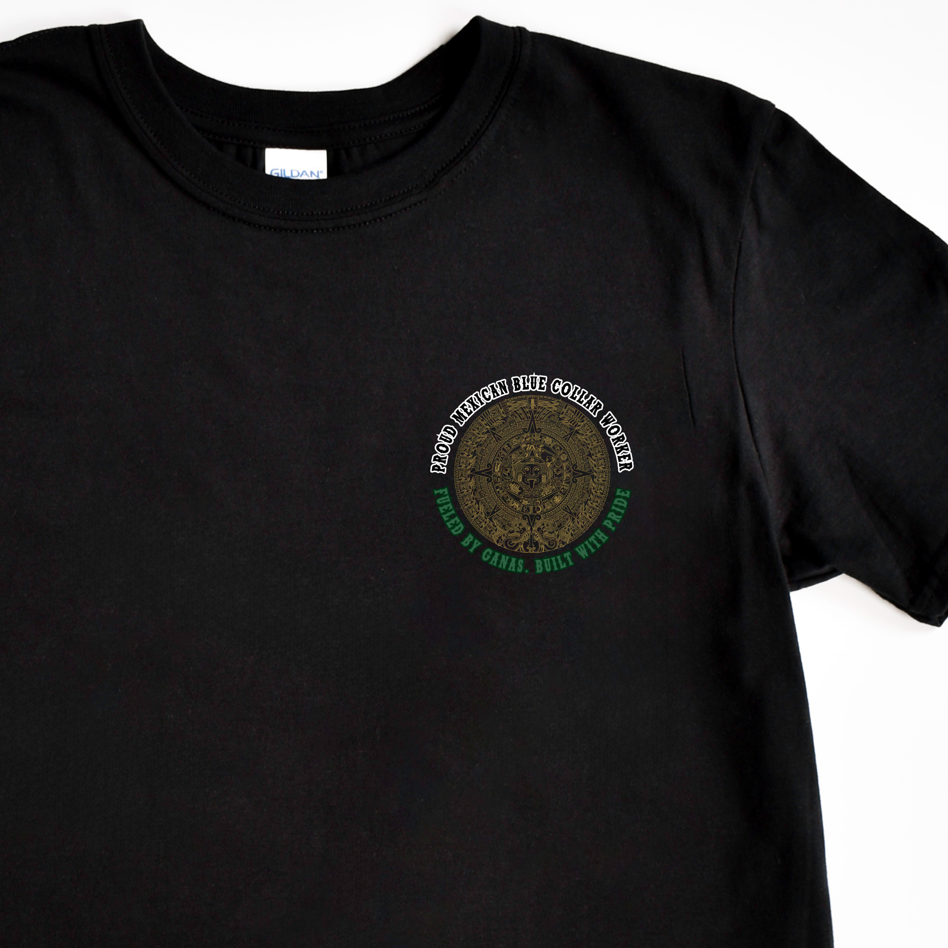 Proud Mexican Blue Collar Worker Tee – Dual Print Edition | Back Design + Chest Detail