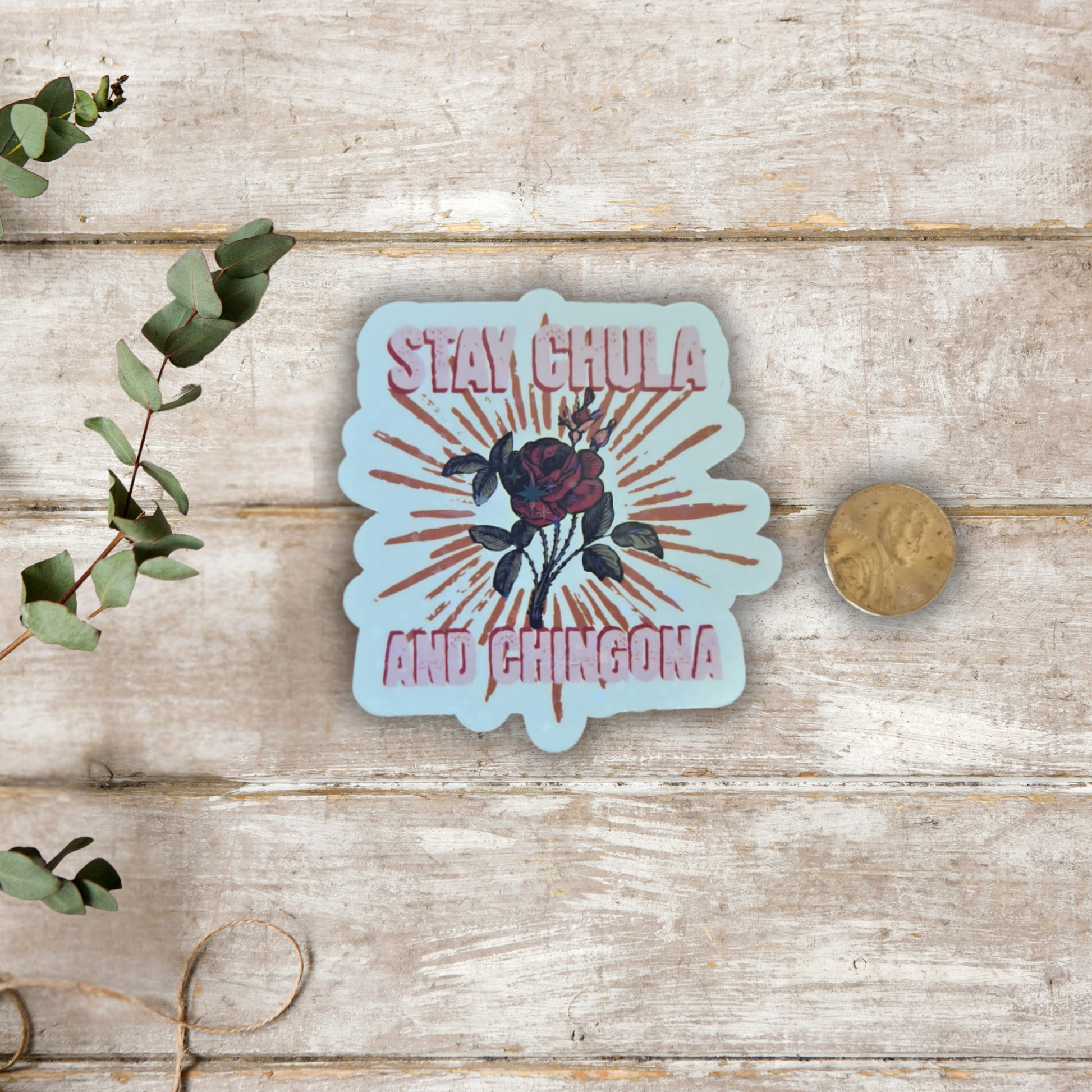 Este sticker Stay Chula and Chingona es la mezcla perfecta entre belleza y fuerza. Con una rosa ardiente al centro y un mensaje directo, este diseño holográfico te recuerda que puedes ser delicada y brava al mismo tiempo. 💅🔥